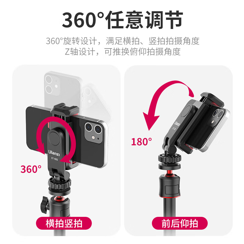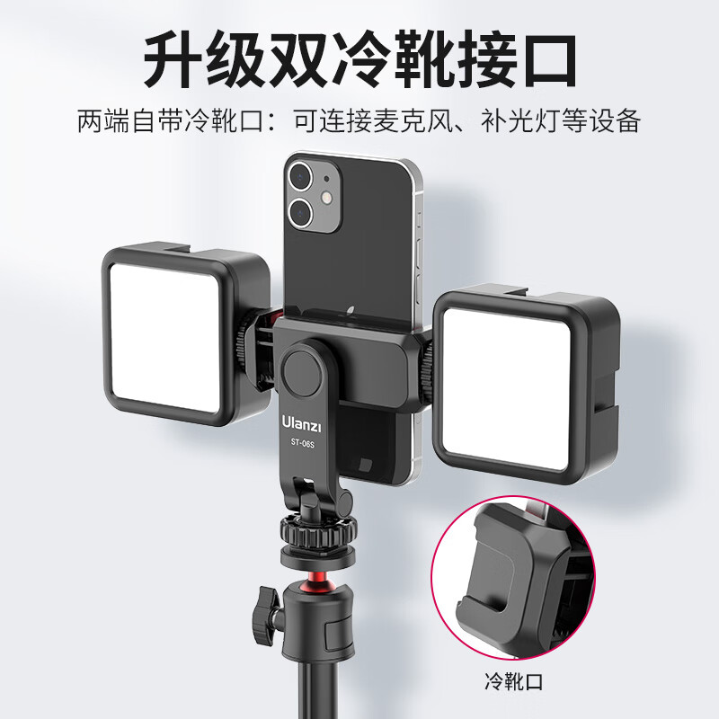 ulanzi 优篮子 ST-6S横竖拍旋转冷热靴手机夹RGB补光灯套装取景翻转屏手机VLOG单反相机多功能摄影夹价格:111.00元!