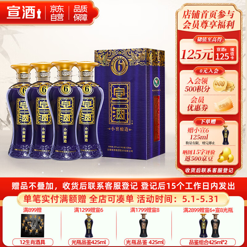 宣酒 宣6 浓香型白酒 40度 425ml*4瓶 整箱装 小窖酿造价格:387.00元!