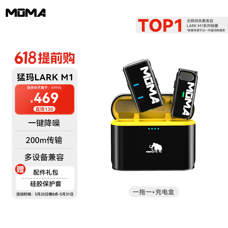 猛玛(MOMA)无线麦克风领夹猛犸手机相机直播一拖一小蜜蜂收音麦vlog视频唱歌声卡单反录音设备全套 LARK M1价格:469.00元!