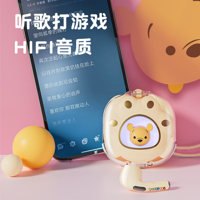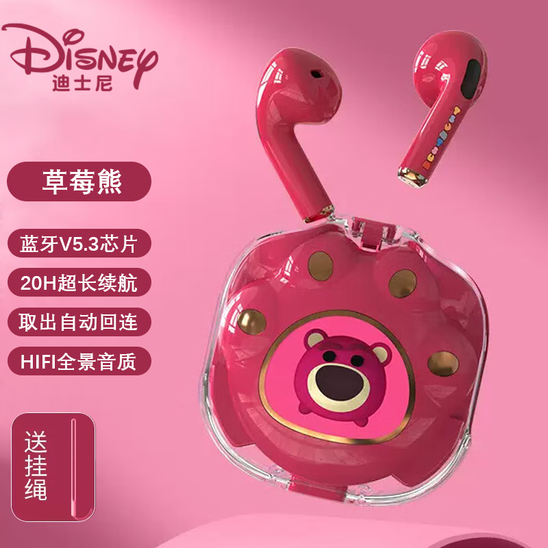 迪士尼(Disney)无线蓝牙耳机半入耳式女生颜值礼物可爱自带挂绳音乐耳机适用于苹果华为小米oppo E66 草莓熊价格:109.00元!