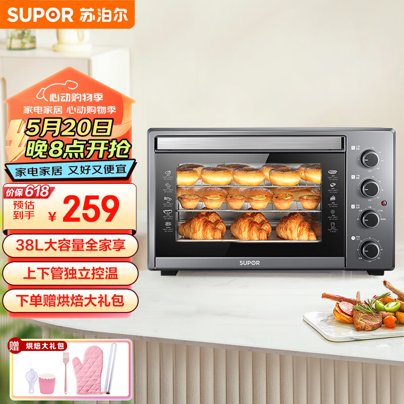 苏泊尔 (SUPOR)家用多功能电烤箱 38L大容量 上下独立控温低温发酵多层烤位易操作 钢灰色 K38FK613价格:259.00元!