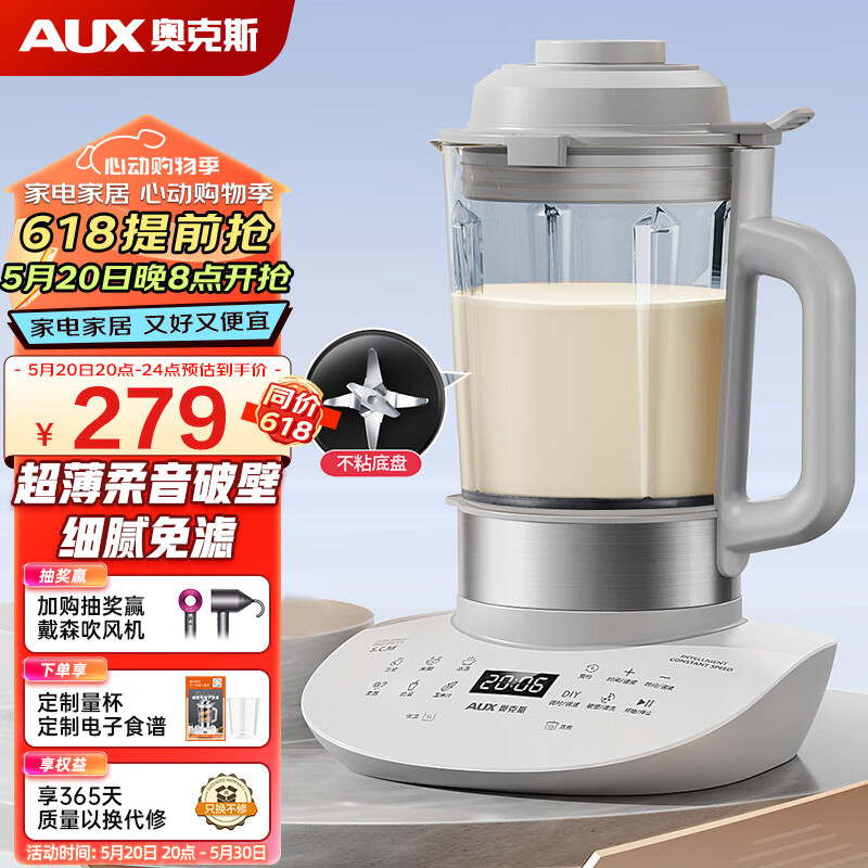 奥克斯(AUX) 破壁机家用 1.65升轻薄柔音加热多功能豆浆机破壁料理机榨汁机搅拌机辅食机 HX-PB9323 青春款-圆形底座价格:439.00元!