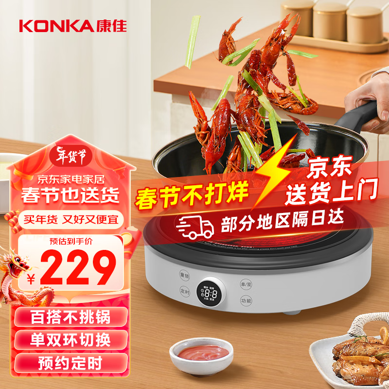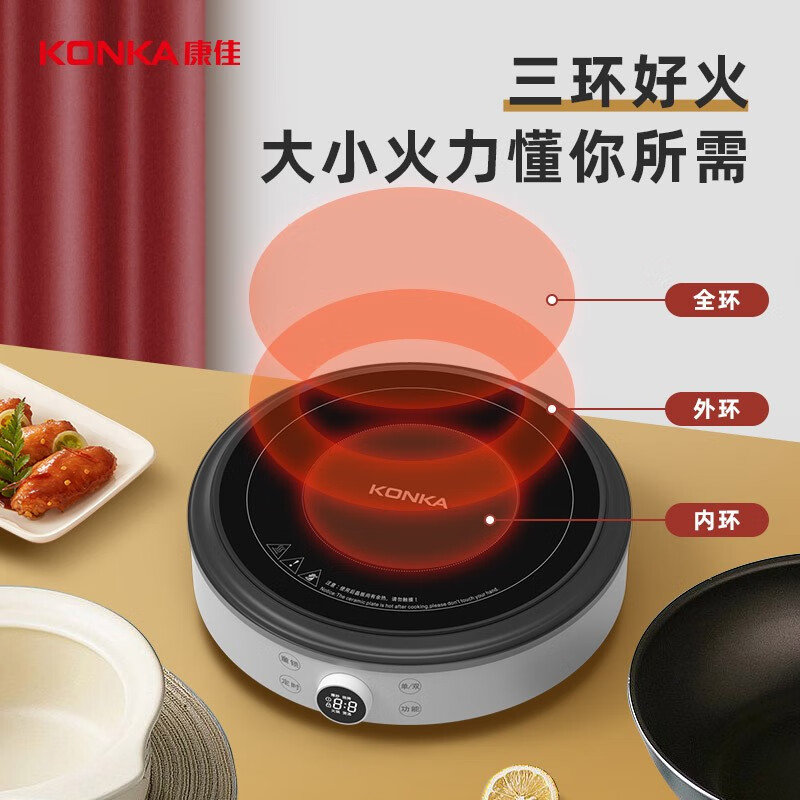 康佳(KONKA)电陶炉 电磁炉家用 电茶炉光波炉红外炉大功率不挑锅低辐射 KES-W22CS16价格:229.00元!