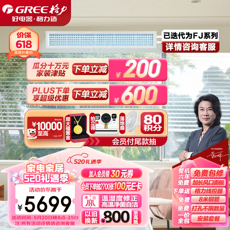 格力(GREE)中央空调 风管机一拖一 大1匹家用嵌入式空调 1级能效 FGR2.6Pd/C3Nh-N1 京仓派送(一价全包)价格:5699.00元!