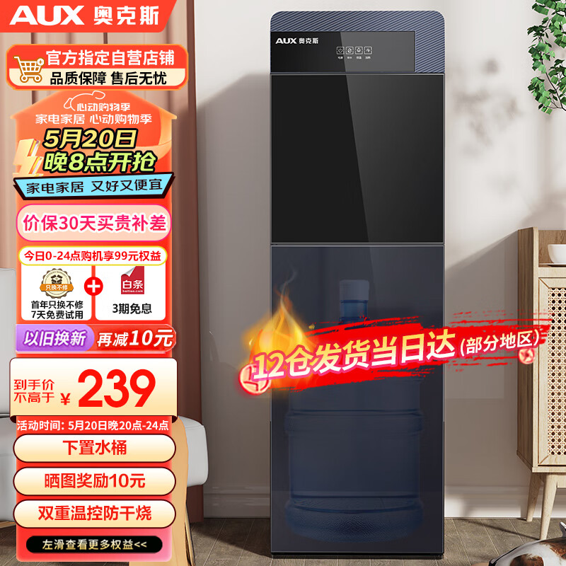 奥克斯(AUX)饮水机下置式家用立式温热型快速加热下置水桶饮水器YR-5-X-26【蓝色】价格:269.00元!