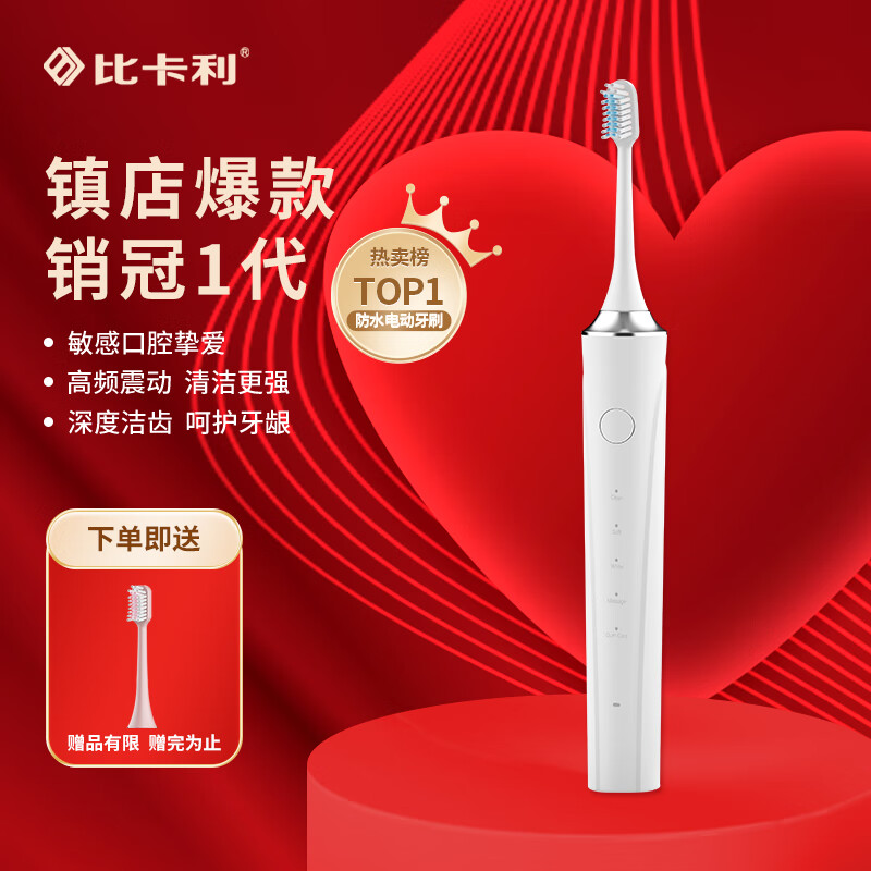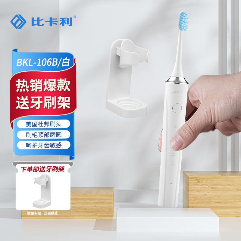 比卡利6只刷头 电动牙刷成人声波电动牙刷情侣 38000次高频振动 106B优雅白价格:119.00元!