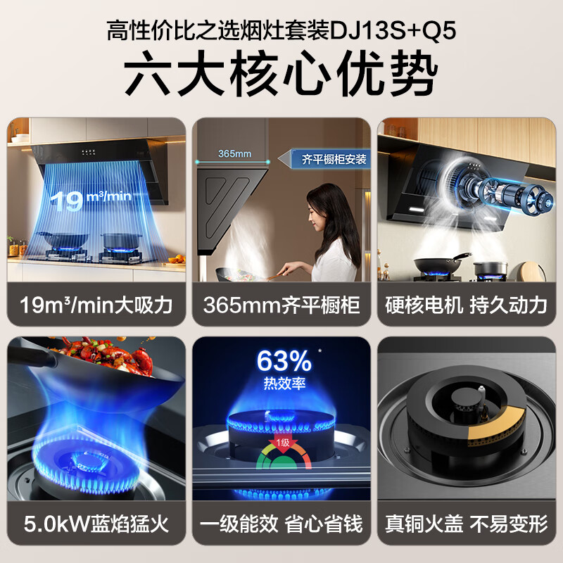 苏泊尔(SUPOR)抽油烟机燃气灶套装 家用小尺寸大吸力 19立方侧吸式小户型烟灶套装 DJ13S+Q5天然气价格:1178.00元!