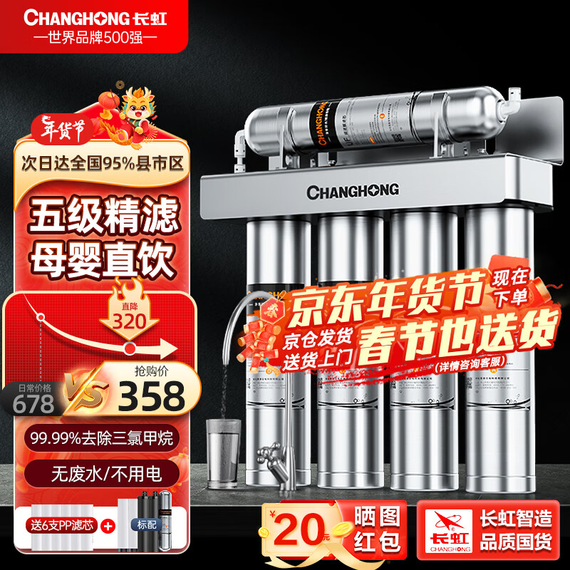 长虹(CHANGHONG) 净水器家用直饮厨房自来水龙头前置过滤五级超滤不锈钢净水机 0.01微米 自行简易安装价格:678.00元!