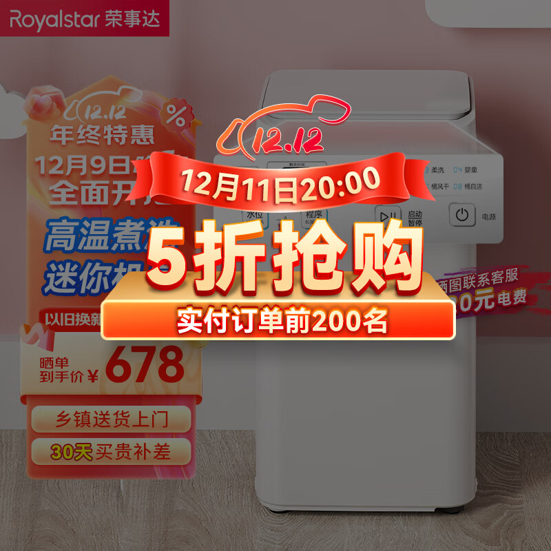 荣事达(Royalstar)波轮洗衣机全自动 3公斤迷你婴儿小型儿童内衣洗衣机小 高温煮洗深度除螨 RB3025JG价格:698.00元!