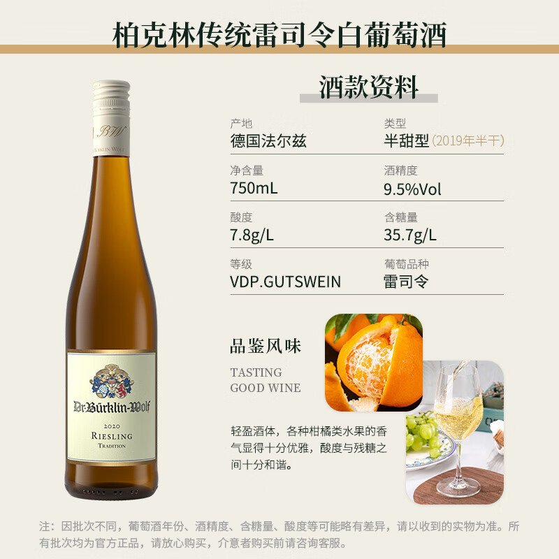 商品名称:雷司雷司柏克林5星VDP名庄雷司令白葡萄酒