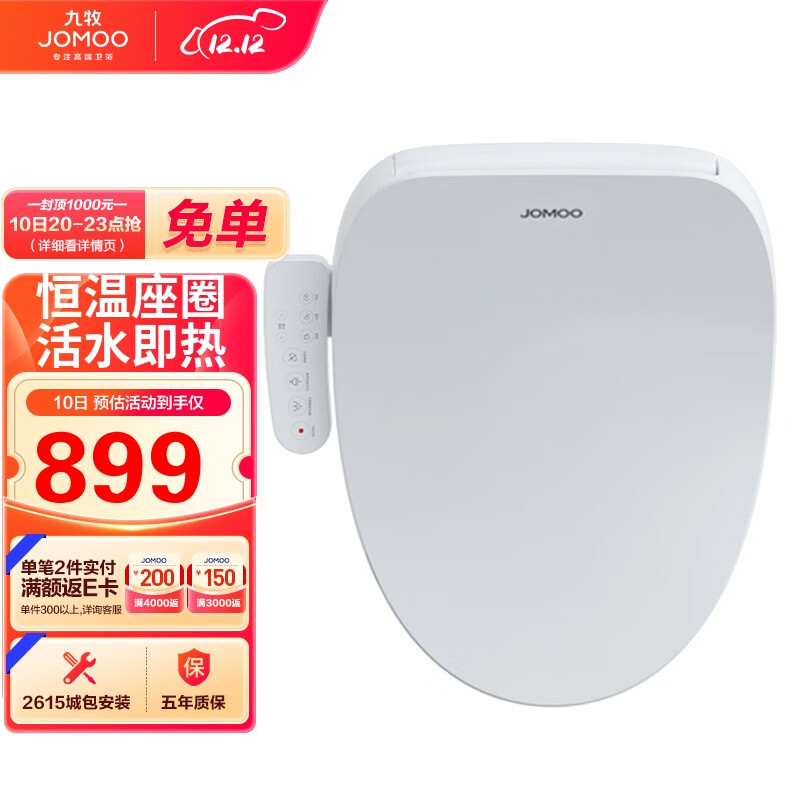 九牧 JOMOO 智能马桶盖即热式多功能臀洗冲洗器 智能马桶盖板洁身器 ZS020价格:1049.00元!