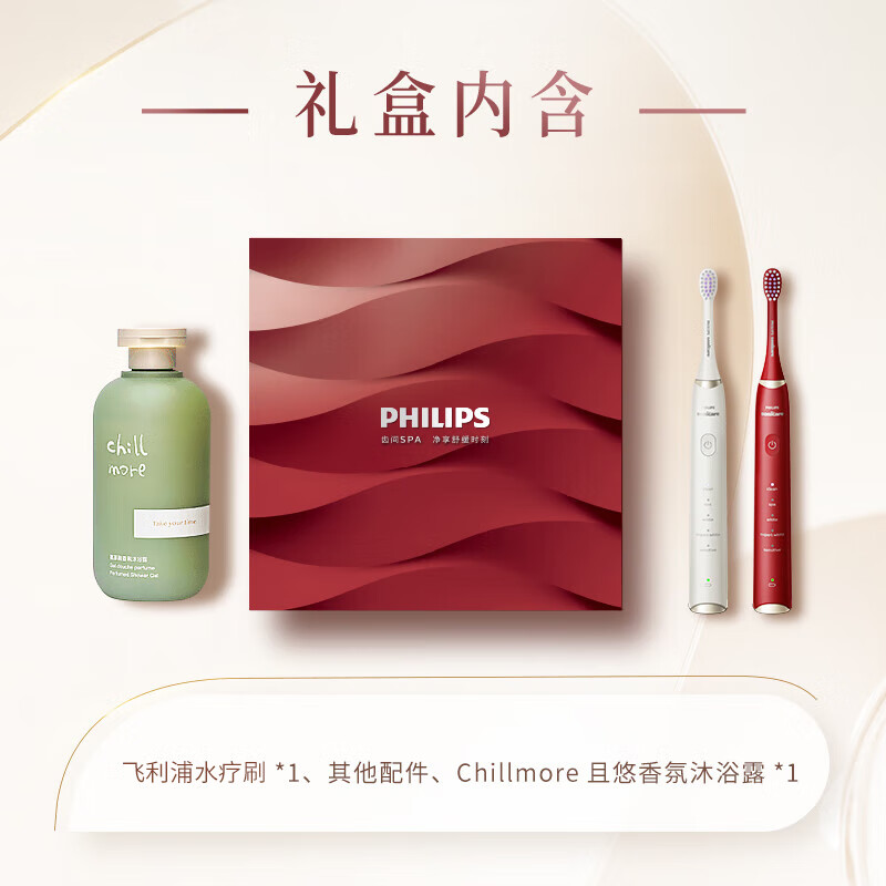 飞利浦(PHILIPS)电动牙刷成人 520情侣送男/女友 母亲节礼物 S5系列SPA级声波震动5种模式红色HX2491/02BP礼盒款价格:399.00元!
