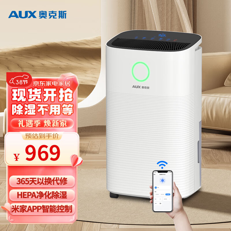 奥克斯(AUX)除湿机/抽湿机 除湿量22升/天 家用轻音地下室干衣除湿器干燥机wifi手机控制KDY-DP22A1价格:969.00元!