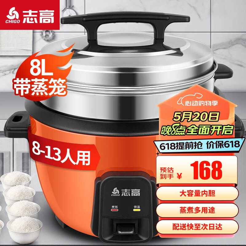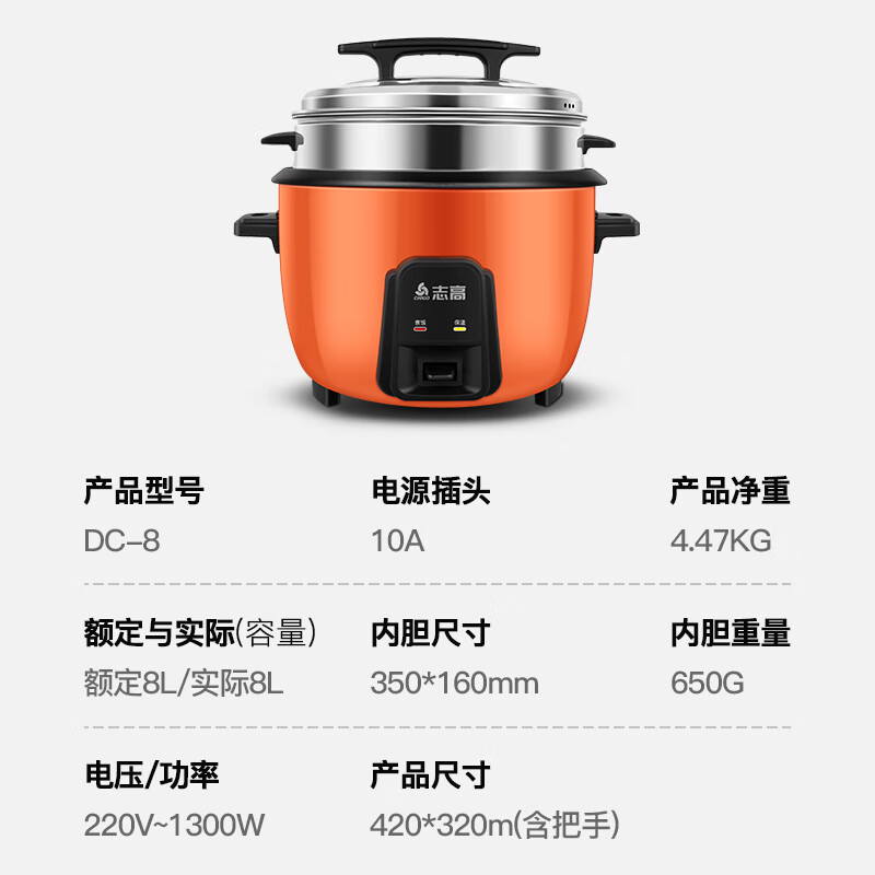 志高(CHIGO)电饭煲商用电饭锅食堂酒店餐厅特大号老式大容量保温蒸饭煲煮饭锅10人20人以上家用 DC-8价格:189.00元!