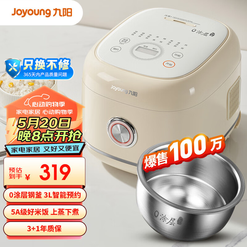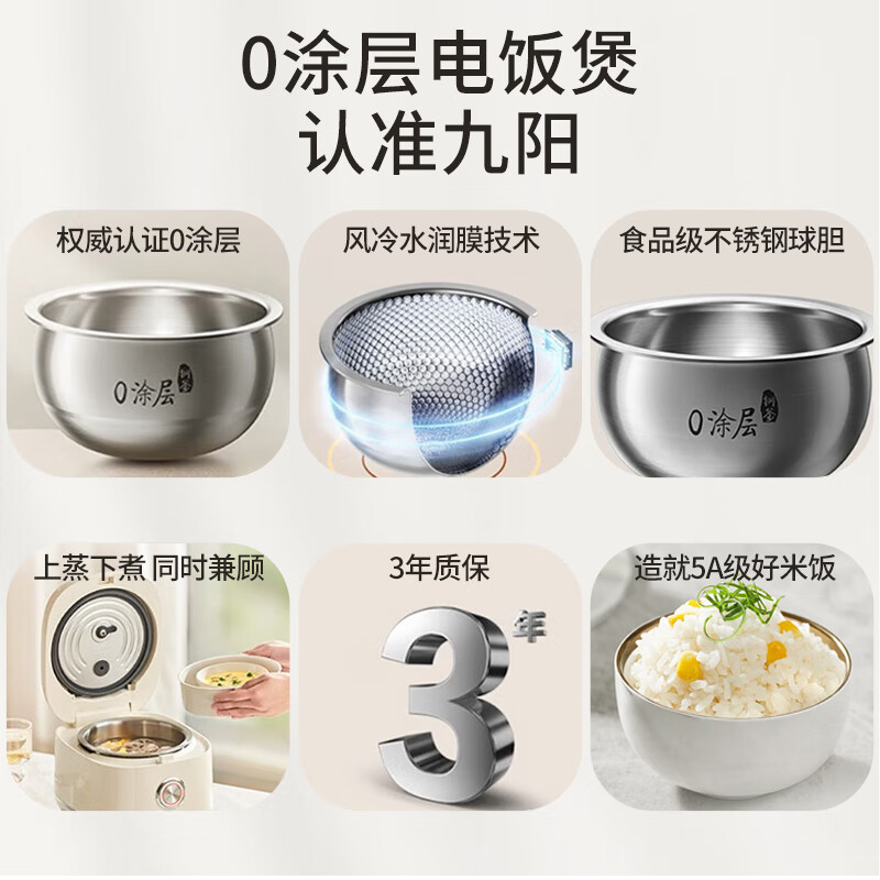 九阳家用3L电饭锅304不锈钢内胆0涂层5A品质好米饭电饭煲30N1价格:319.00元!