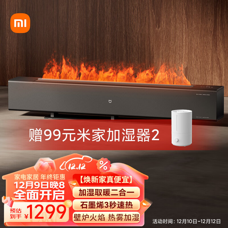 米家小米石墨烯踢脚线电暖器仿真火焰版 电暖气客厅轻音移动地暖加湿功能壁炉取暖器价格:1299.00元!