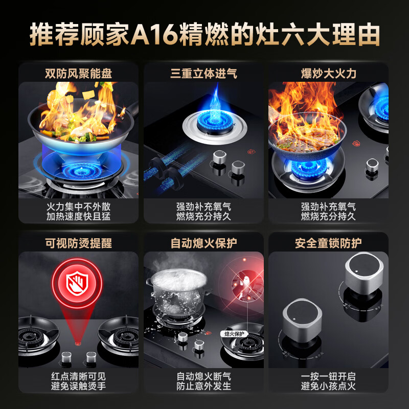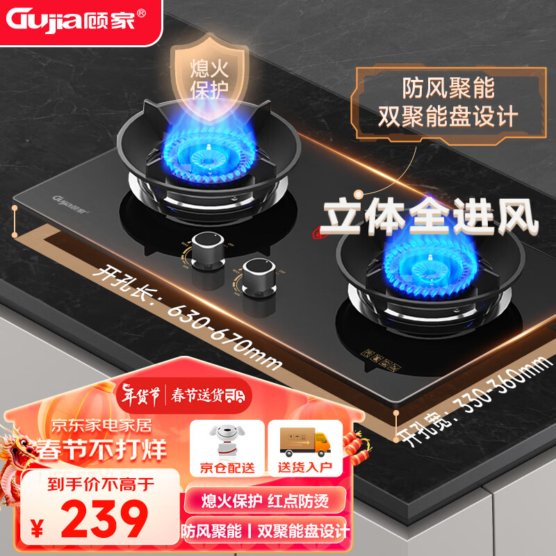 顾家燃气灶煤气灶双灶具嵌入式全进风聚能猛火节能天然气灶液化炉灶台式套装 旗舰热售丨防风聚能盘丨天然气价格:359.00元!