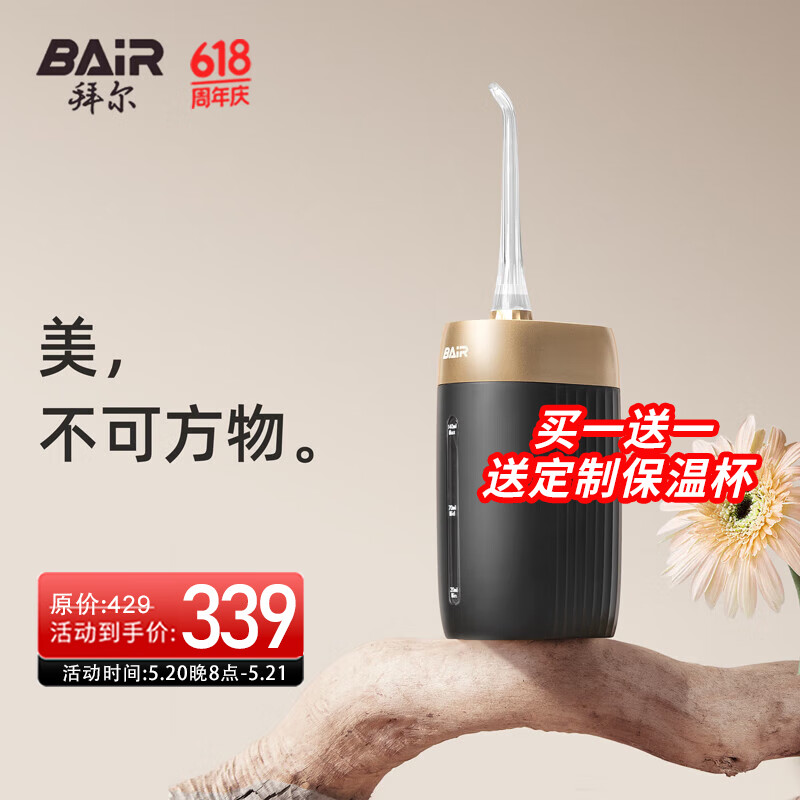 拜尔V5小方瓶 电动冲牙器 伸缩便携式正畸电动洗牙器家用洁牙水牙线冲洗器 送女男朋友礼盒装 小黑瓶价格:399.00元!