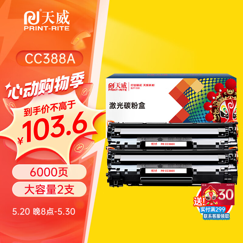 天威M1136硒鼓2支装388A大容量适用惠普88A硒鼓CC388A HP P1106 P1108 P1007 M126a M128fn M128fw打印机墨盒价格:129.00元!
