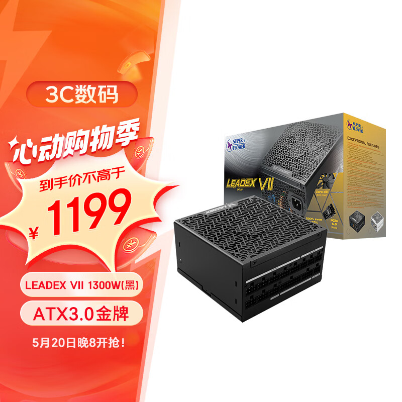 SUPER FLOWER振华 额定1300W LEADEX VII 1300W金牌全模 ATX3.0电源 支持4090显卡 全日系电容 十年保固价格:1199.00元!