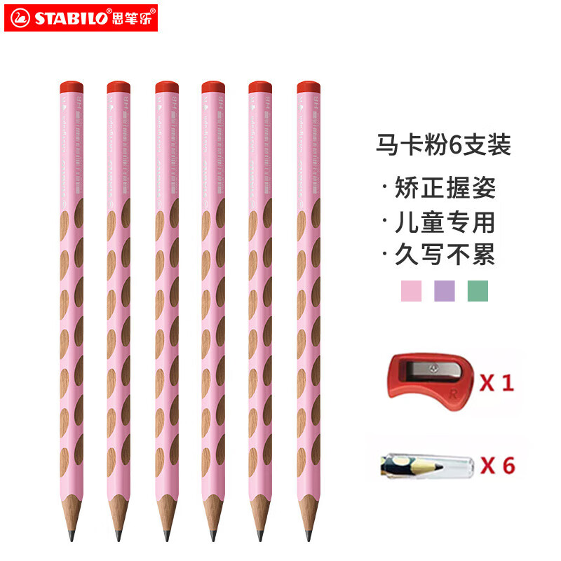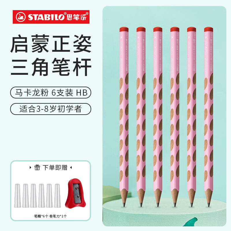 思笔乐(STABILO)德国进口HB洞洞铅笔6支 9mm粗杆三角杆幼儿园小学文具 无毛刺光滑笔杆 马卡龙粉322/16价格:96.60元!