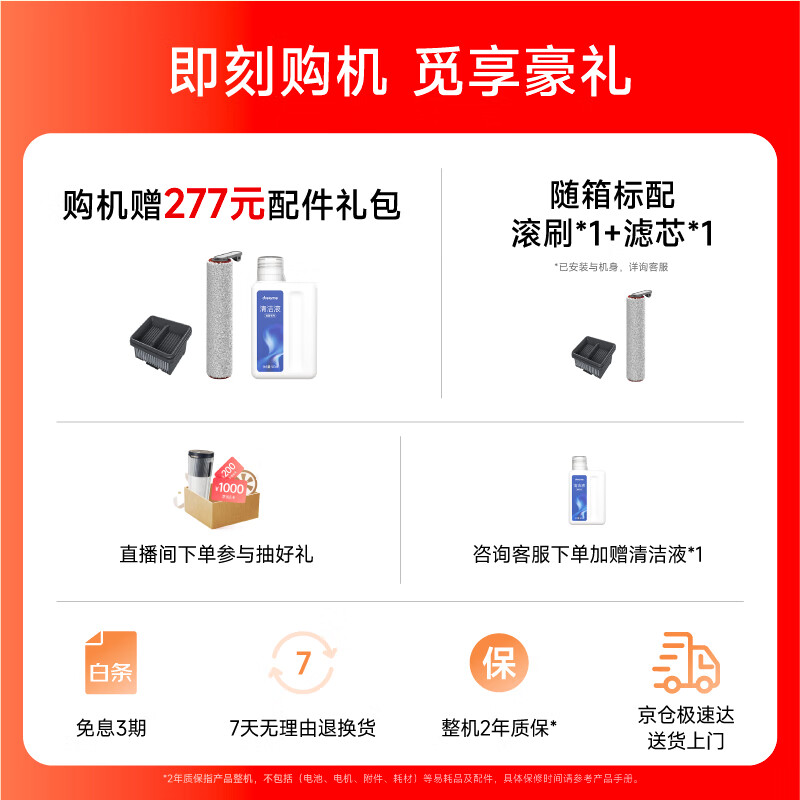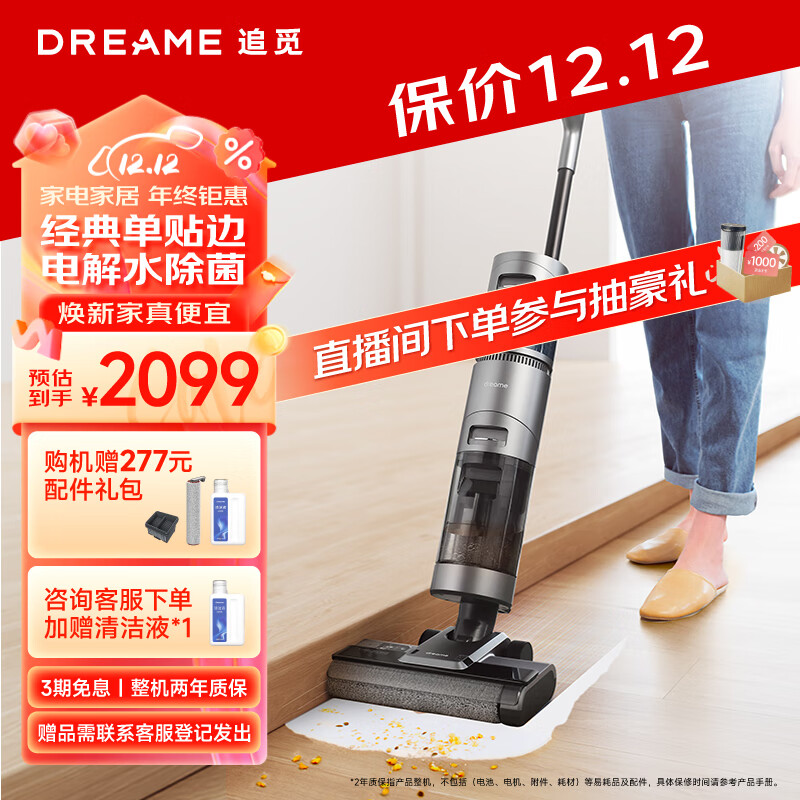 追觅无线智能洗地机H12S家用扫地手持吸尘洗拖一体拖地机 热风烘干价格:2049.00元!