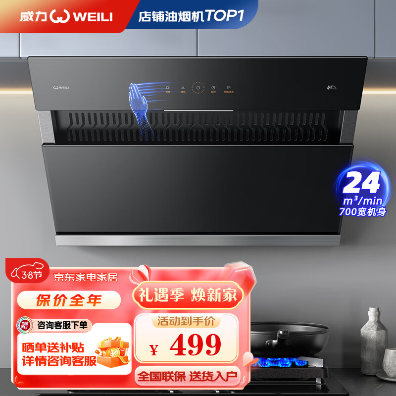 威力(WEILI)抽油烟机小尺寸侧吸式24m3/min大吸力中小户型触控家用厨房脱排油烟机吸烟机WLCX03(自行安装)价格:483.21元!
