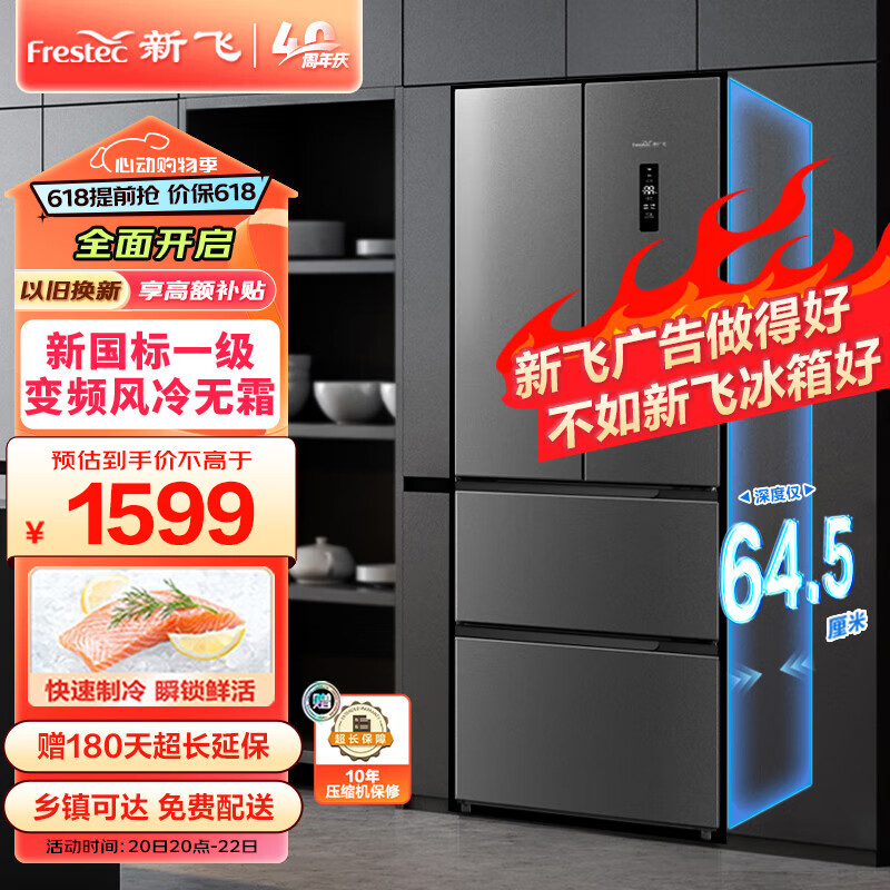 新飞(Frestec)310升超薄可嵌入法式变频四门多门多维风冷无霜一级能效家用电冰箱 BCD-310WK7CT价格:1599.00元!