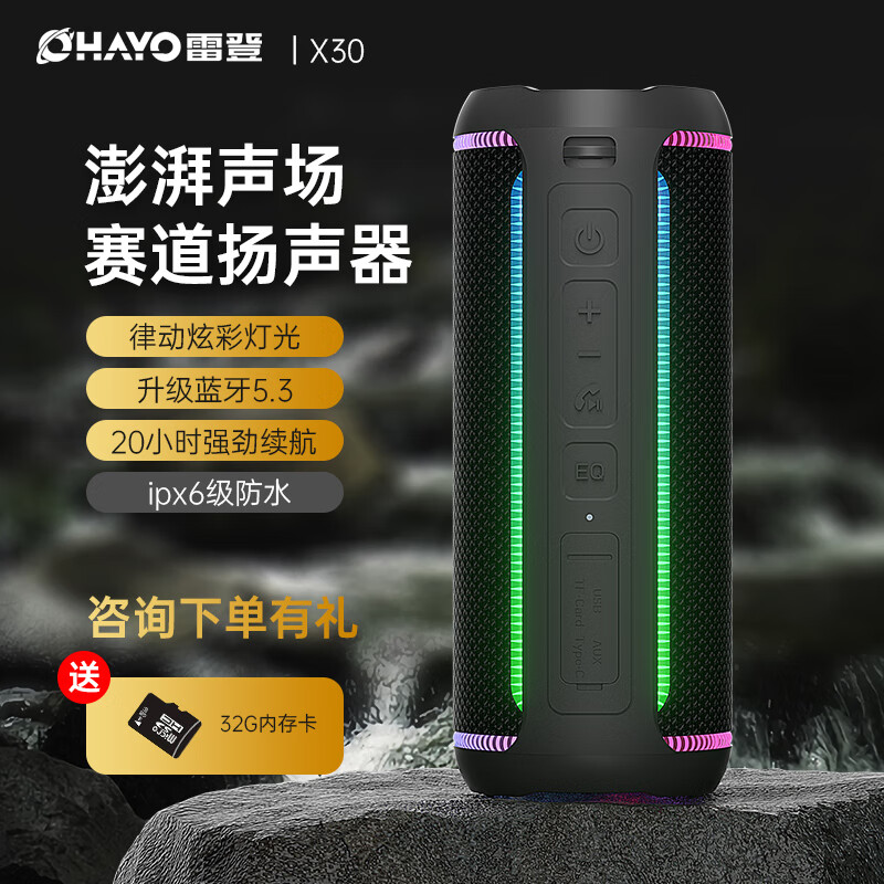 雷登(OHAYO)X30 音响蓝牙音箱 增强版赛道扬声器 音乐冲击波重低音炮3D环绕便携式户外五代桌面插卡价格:356.00元!