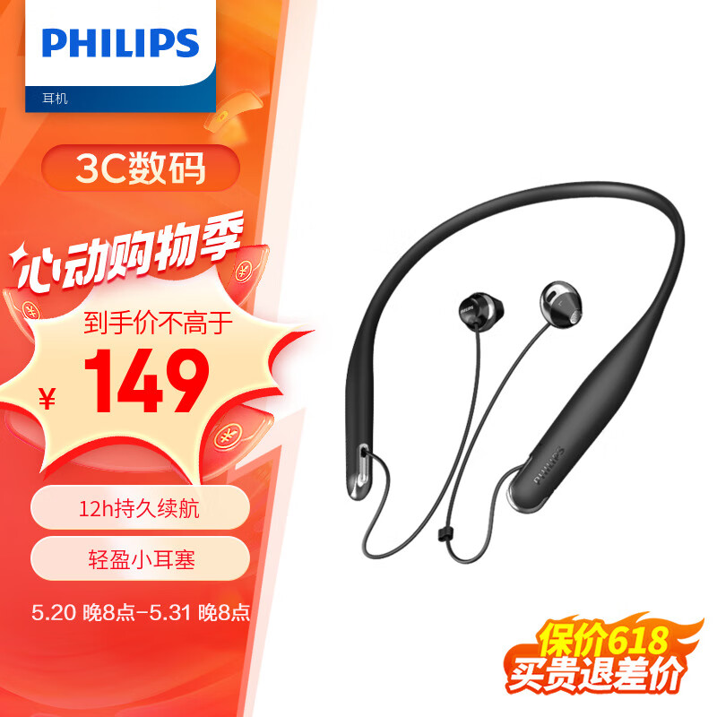 飞利浦(PHILIPS)无线蓝牙耳机挂脖式运动耳机均衡音效来电震动苹果华为小米安卓手机通用TAN4205黑价格:149.00元!