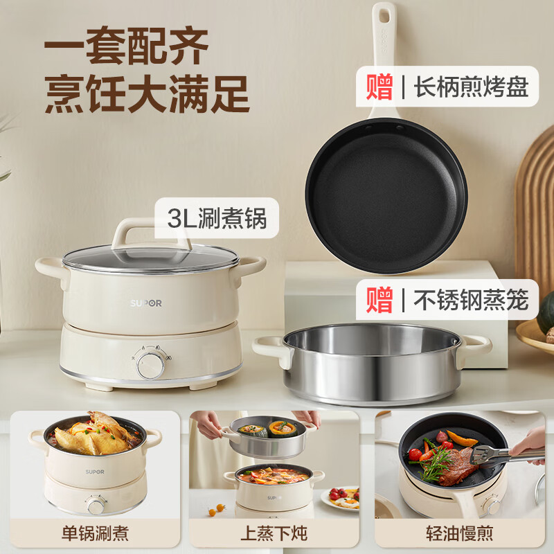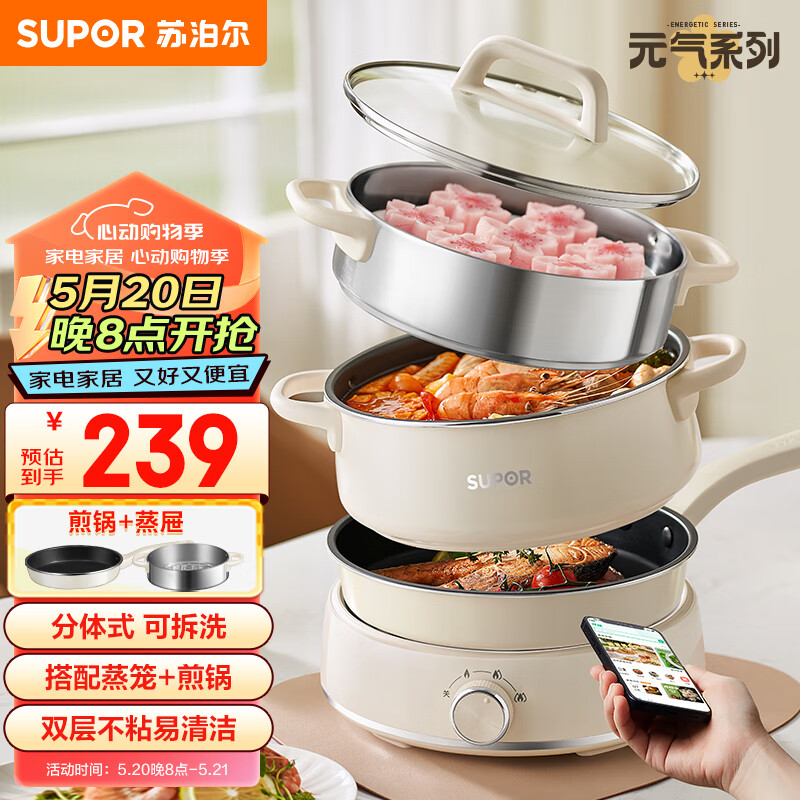 苏泊尔(SUPOR)电火锅 火锅锅 分体可拆洗家用火锅专用锅电蒸锅煎炒锅多功能一体电煮锅多用途锅 H22YK855A价格:239.00元!