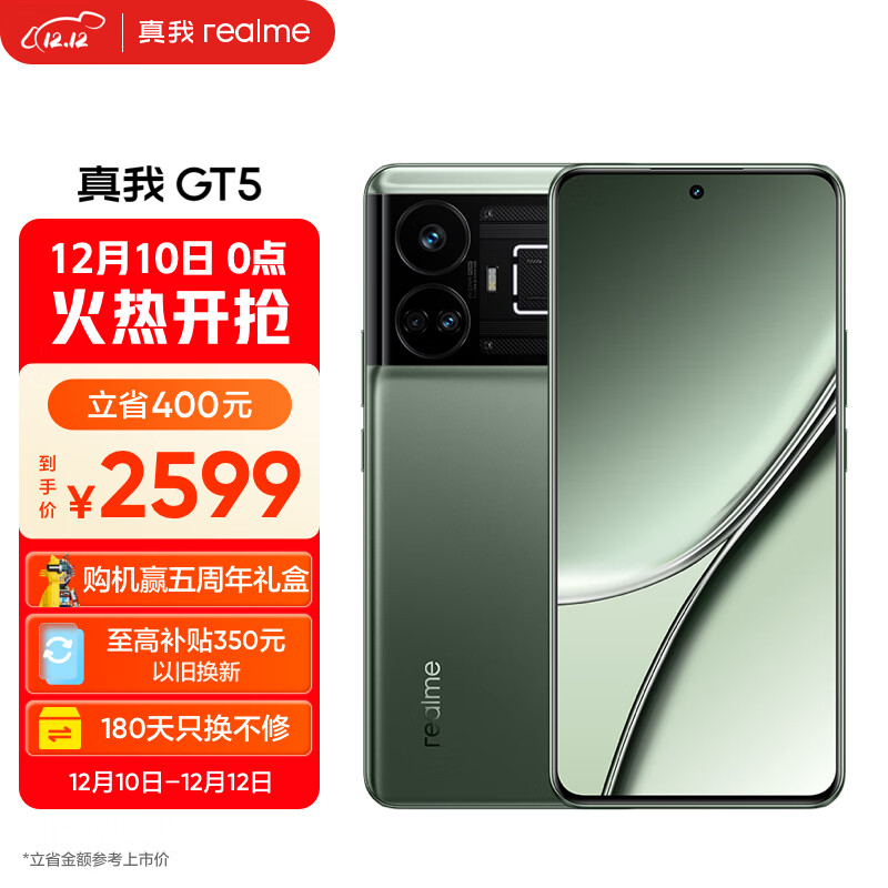 realme真我GT5 第二代骁龙8 5G旗舰芯 150W光速秒充 144Hz电竞直屏 12GB+256GB 星雾绿洲 5G手机价格:2599.00元!