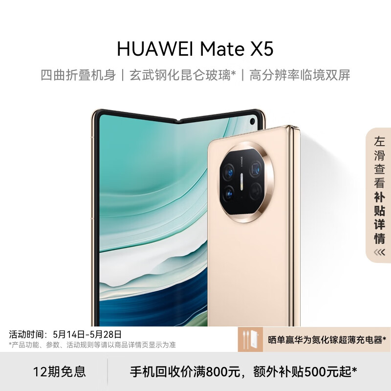 华为(HUAWEI) Mate X5 折叠屏手机 16GB+512GB 羽砂金价格:14999.00元!