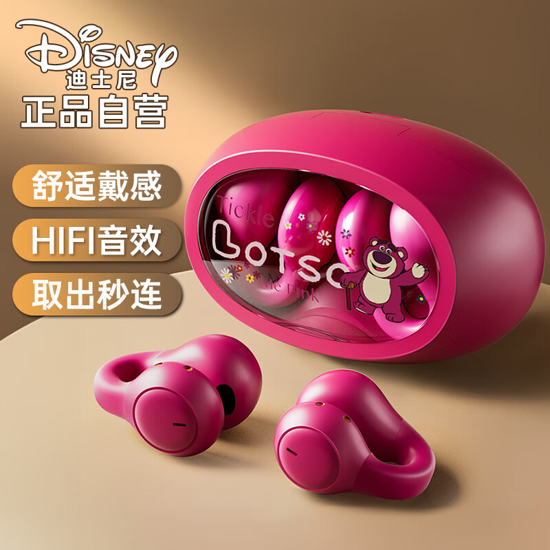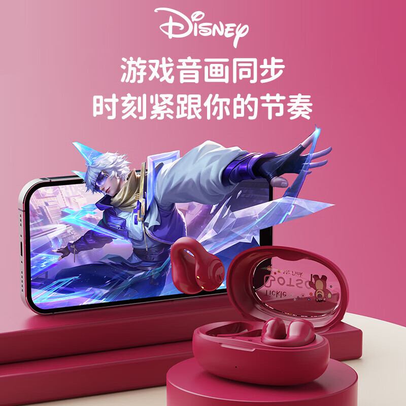 迪士尼(DISNEY)无线蓝牙耳机高音质骨传导概念夹耳运动降噪跑步可爱颜值游戏音乐苹果安卓通用C25【玫红草莓熊】价格:119.00元!