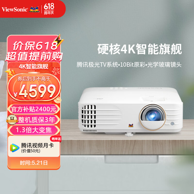 优派 K701-4K 投影仪家用 智能投影机 游戏电竞(4K超高清 240Hz刷新率 4.2ms低延迟 3700流明)价格:6999.00元!