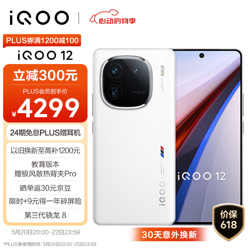 vivo iQOO 12 16GB+1TB传奇版 第三代骁龙 8 自研电竞芯片Q1 大底主摄潜望式长焦 5G电竞手机价格:4699.00元!