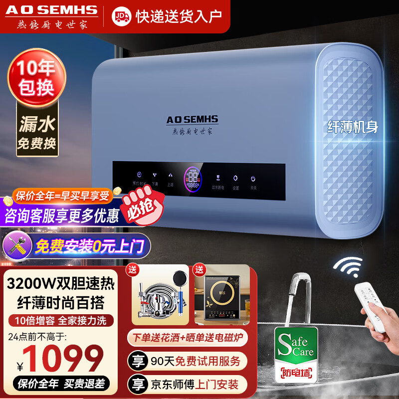 AOSEMHS热水器电热水器家用洗澡扁桶一级能效大容量50升速热3200W-C50-32WB16价格:1099.00元!