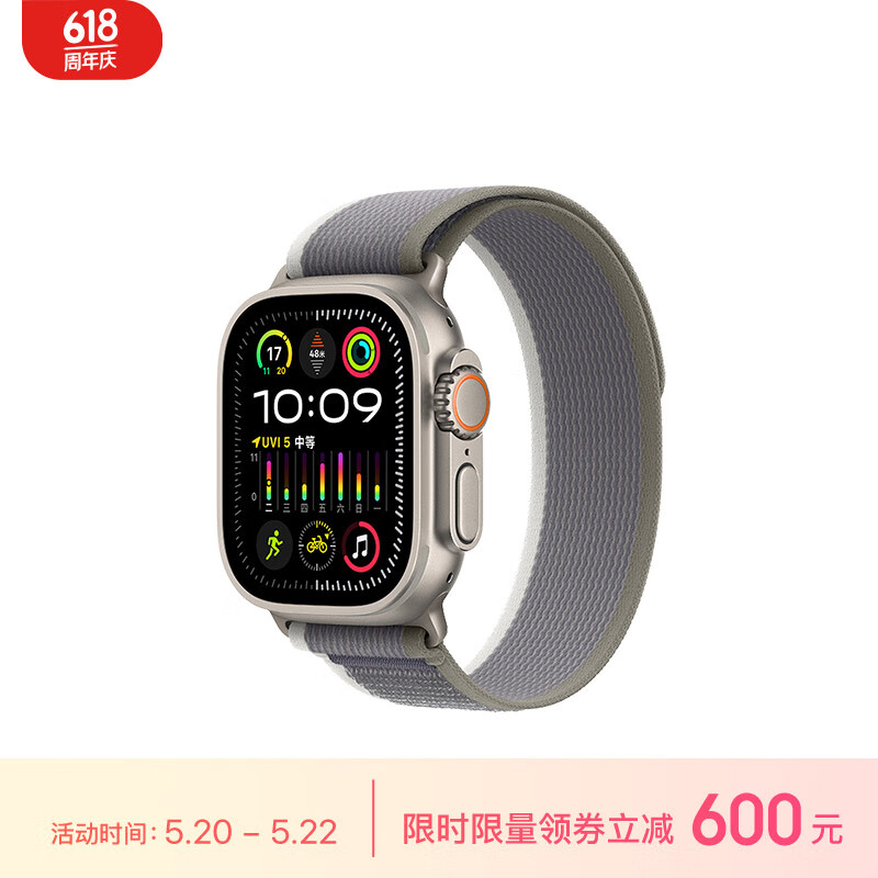 Apple/苹果 Watch Ultra2 智能手表GPS+蜂窝款49毫米钛金属表壳绿配灰色野径回环式表带S/M MRFN3CH/A价格:6499.00元!