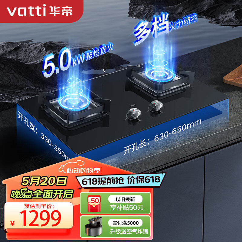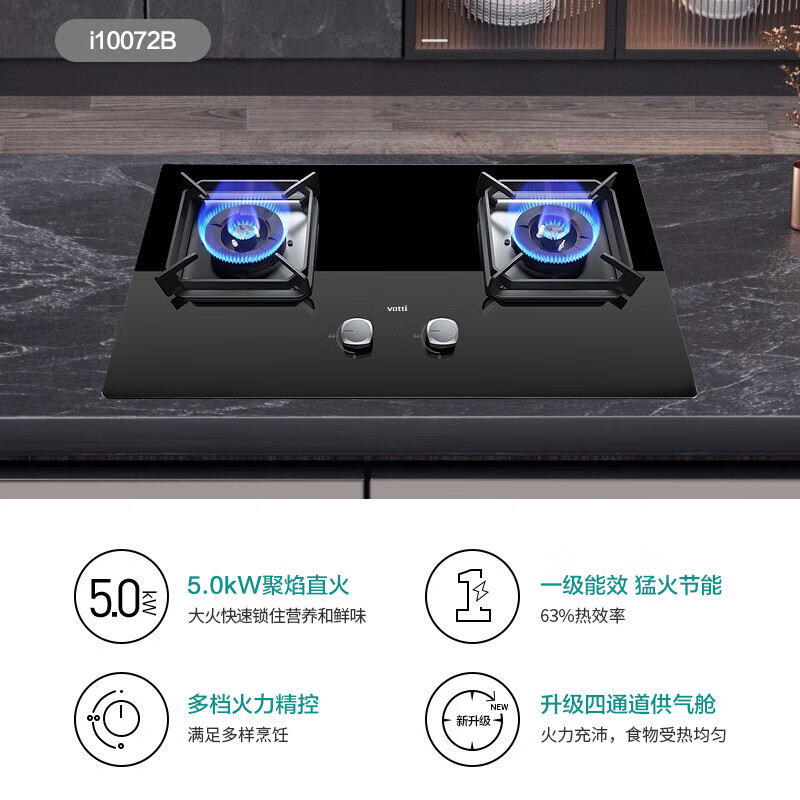 华帝(VATTI)燃气灶家用5.0kW大火力高热效易打理猛火灶台式嵌入式两用煤气灶双灶台灶具JZY-i10072B(液化气)价格:1399.00元!