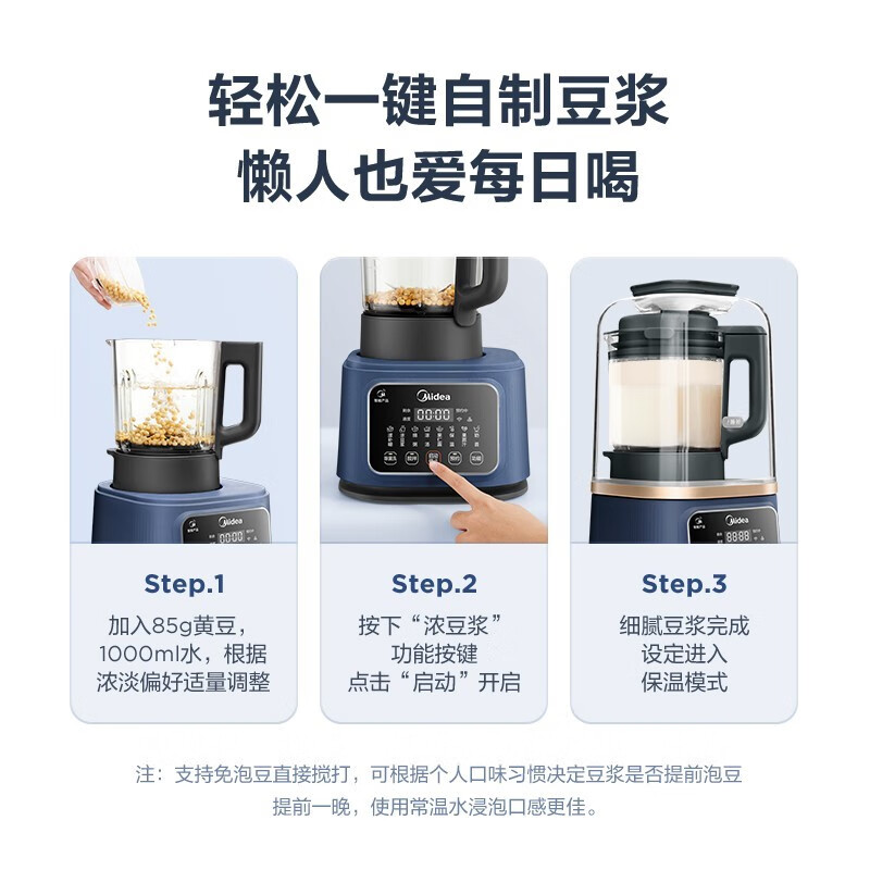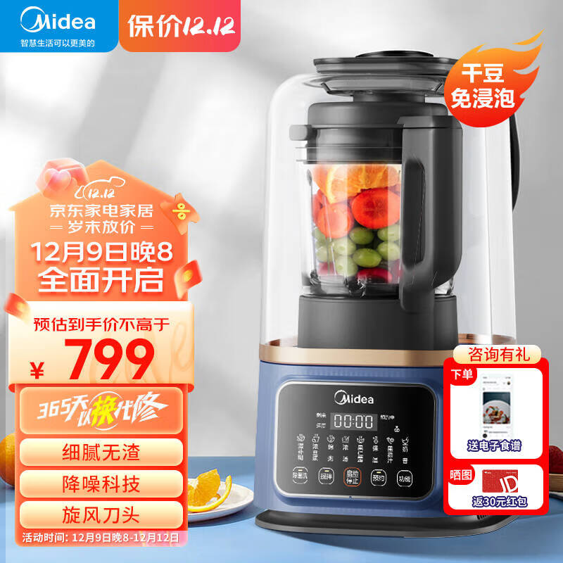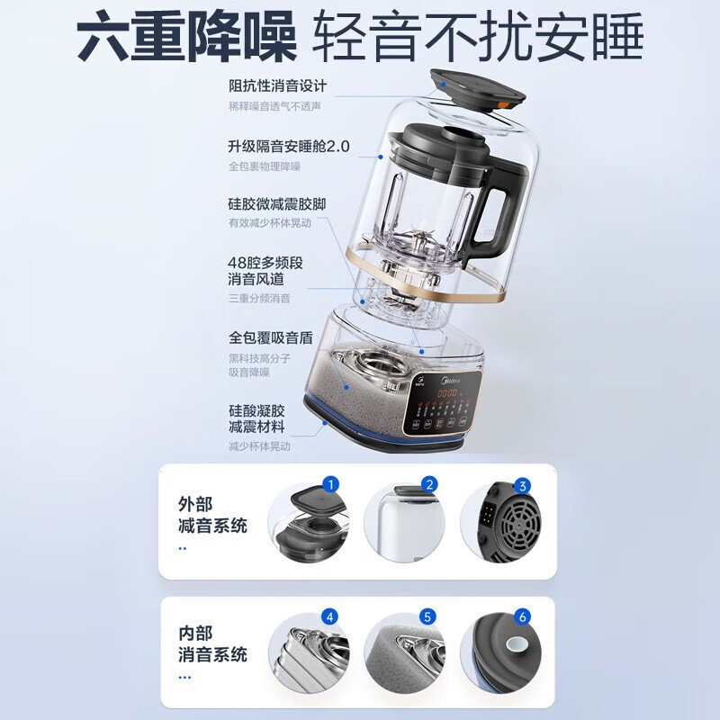 美的(Midea)安睡破壁机家用 低音榨汁机预约定时隔音降噪细腻搅打豆浆机辅食机料理机 MJ-BL80S01 破壁机价格:1099.00元!