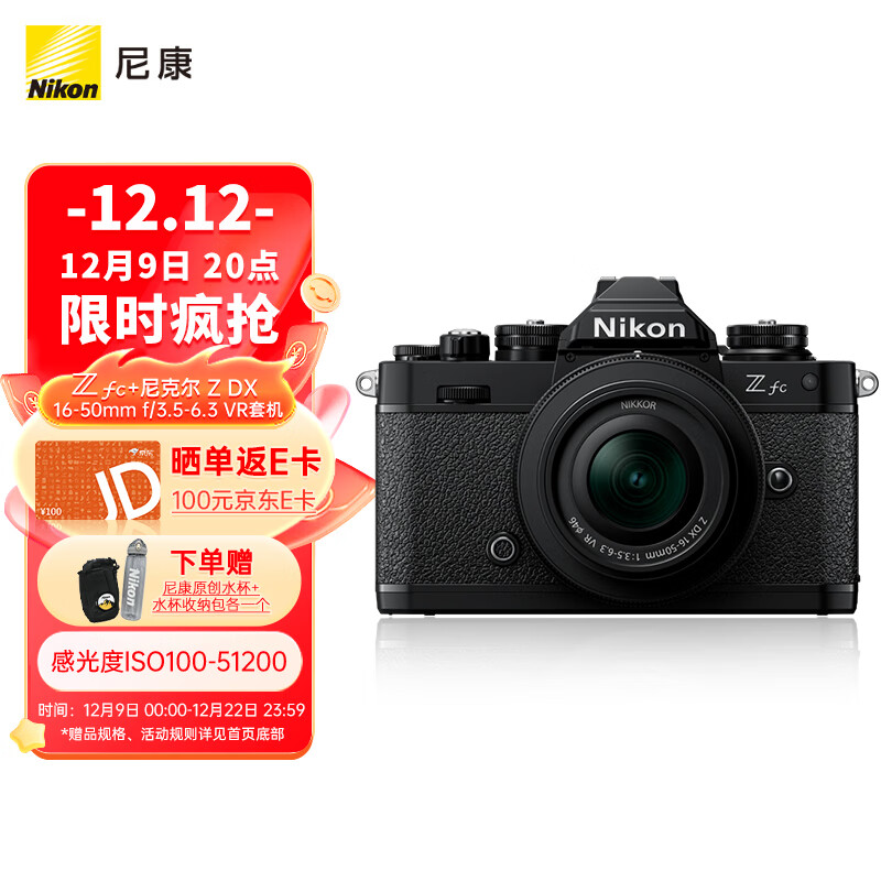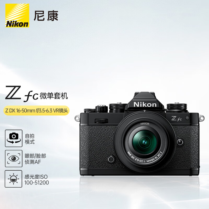尼康 Nikon Z fc 微单数码相机 黑色套机 (Zfc)微单套机(Z DX 16-50mm f/3.5-6.3 VR 微单镜头)价格:6999.00元!