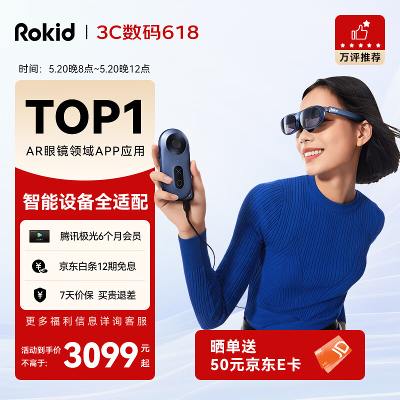 ROKID Max+Station 智能AR眼镜+独立空间站 3D电影游戏 DP直连华为Mate60/苹果15系列 非VR眼镜 一体机价格:2999.00元!