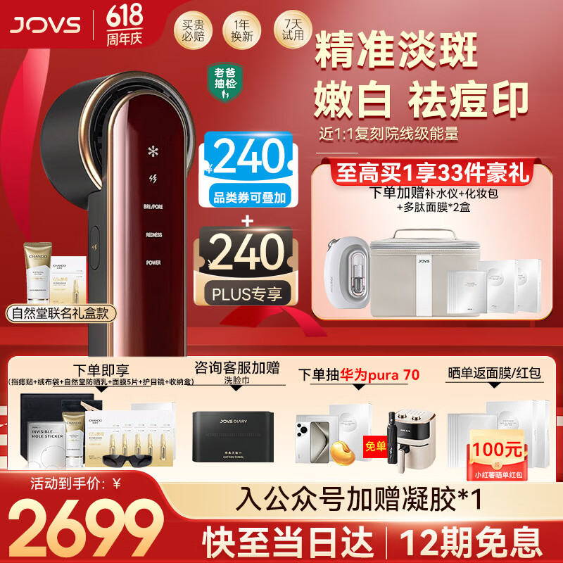 JOVS【自然堂联名】冰点嫩肤仪家用美容器送女友老婆520生日礼物光谱仪淡痘印亮白淡斑橘彩星光价格:3199.00元!