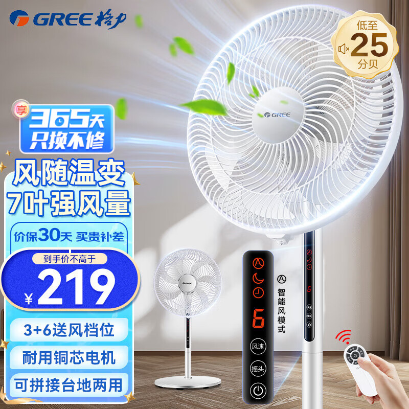 格力(GREE) 家用客厅低噪台式遥控省电七叶大风量落地扇 节能摇头立式办公宿舍床头空气循环扇电风扇 FD-35X67Bh7白价格:259.00元!