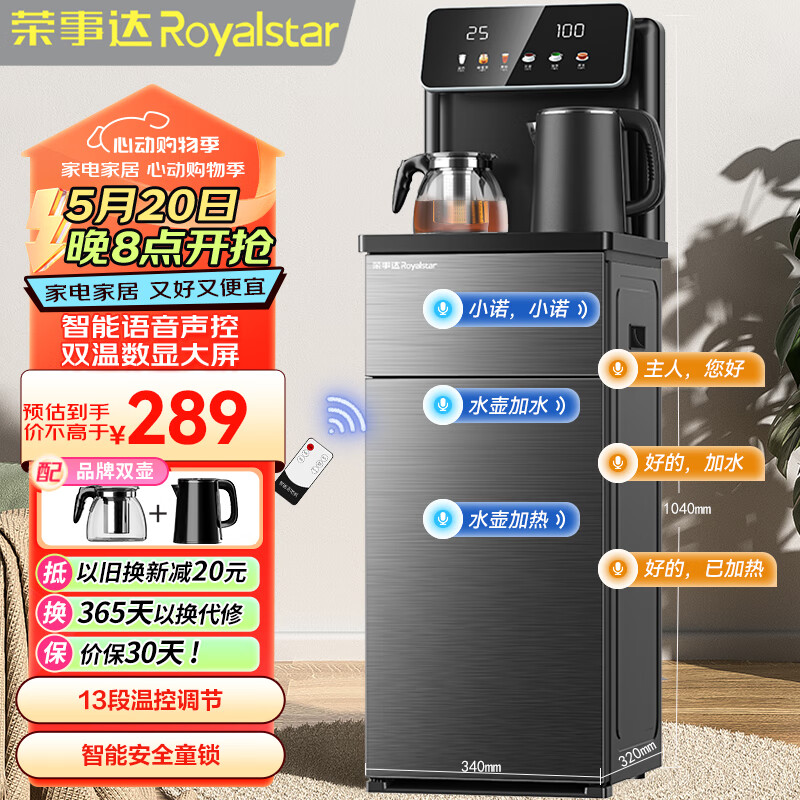 荣事达(Royalstar)语音款茶吧机家用多功能下置式速热立式饮水机CY825价格:289.00元!