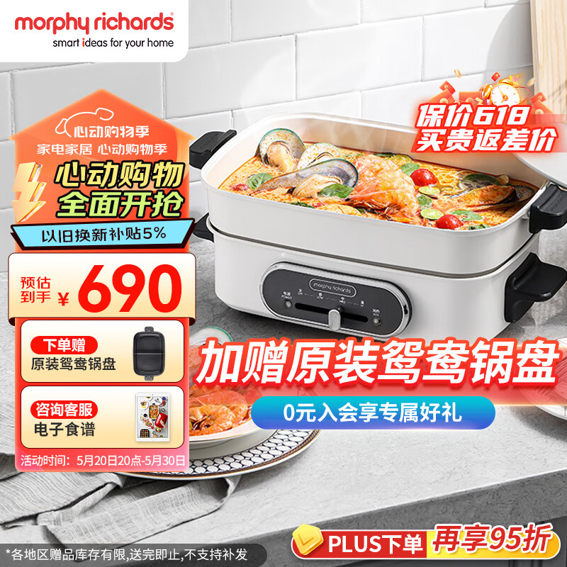 摩飞电器(Morphyrichards)多功能锅 家用多用途锅 电火锅电煮锅电蒸锅电热锅 2.5升 火锅锅 MR9088 富士白价格:690.00元!