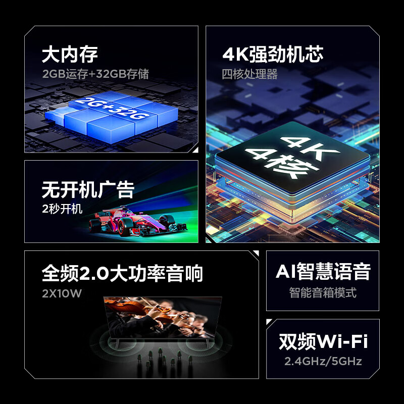 FFALCON雷鸟 雀5 50英寸电视 4K超高清 护眼防蓝光 超薄屏电视 2+32GB 游戏智能液晶电视机50F275C价格:1399.00元!