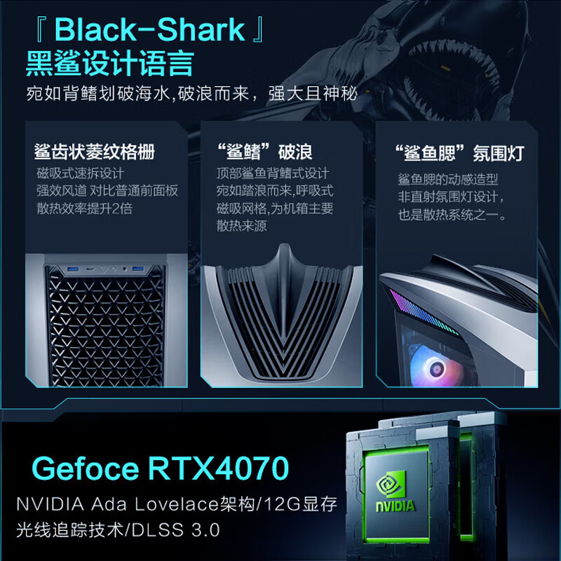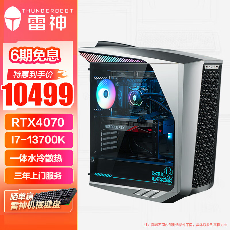 雷神(ThundeRobot)黑武士·Shark水冷游戏台式电脑电竞主机(13代i7-13700K 16G RTX4070 512G SSD?水冷散热)价格:10499.00元!