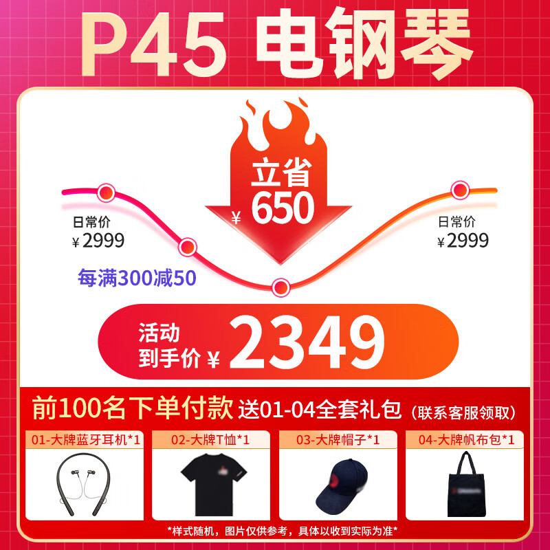 雅马哈(YAMAHA)P45 电钢琴 88键重锤键盘 数码电子钢琴官方标配+X型支架价格:2799.00元!