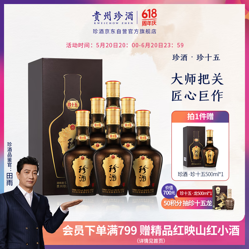 珍酒珍十五 酱香型白酒整箱装 53度 500ml*6瓶酒中珍品 大曲坤沙价格:2840.00元!